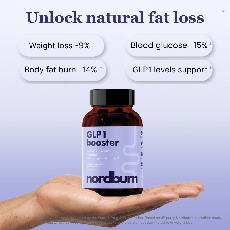 Nordburn GLP-1 Booster is a pharmacist-formulated supplement that supports fat burning, reduces cravings, balances blood sugar, and activates GLP-1 naturally. Made with clinically studied ingredients like Chromium Picolinate and patented Cissus Quadrangularis (CQR-300®), it’s shown in human studies to deliver up to 9% weight loss and 15% body fat reduction—without the need for injectables or pharmaceuticals.
